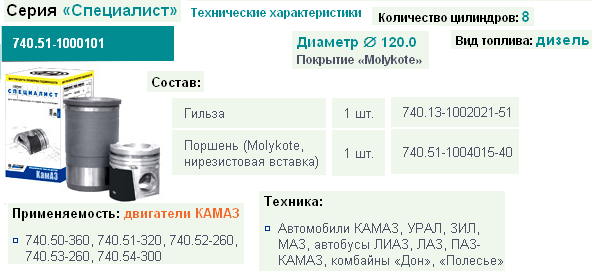 Комплект поршневой ПОН (гил.пор.пал.п/кольца.упл. и упор.кольца) Дальнобой ЯМЗ 7511-1004006-40 раздельная гол. Н/О