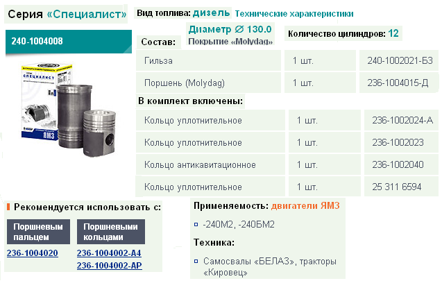 Комплект поршневой Специалист (гильза,поршень, уплотнит.кольца) 260-1000104