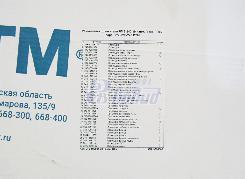 Рем к-т ФГОМ дв. ЯМЗ-238 2 наим. (ФСИ-65,парон.) ВТМ