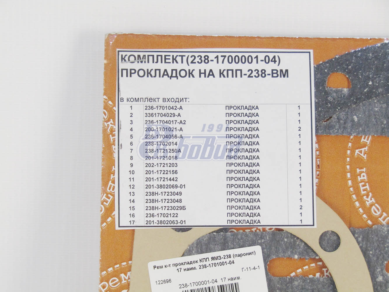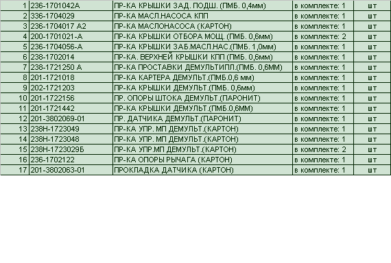 Комплект прокладок на КПП-236 ООО " Ремкомплекты"